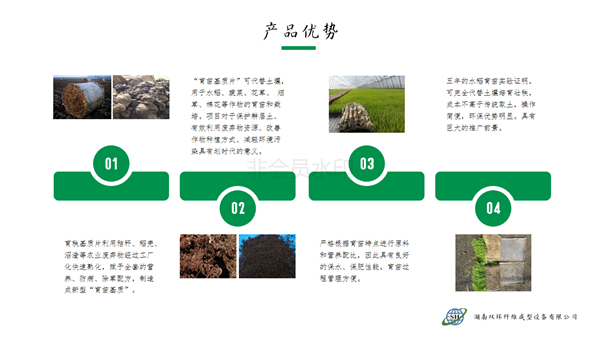 本產(chǎn)品針對(duì)水稻旱育苗大量挖取耕層土,耕層破壞嚴(yán)峻的現(xiàn)實(shí),利用秸稈、蘑菇菌糠、稻殼、沼渣等農(nóng)林廢棄物經(jīng)過(guò)工廠化快速熟化,賦予全套的營(yíng)養(yǎng)、防病、除草配方,制造成新型的嶄新的“無(wú)土育苗基質(zhì)”。